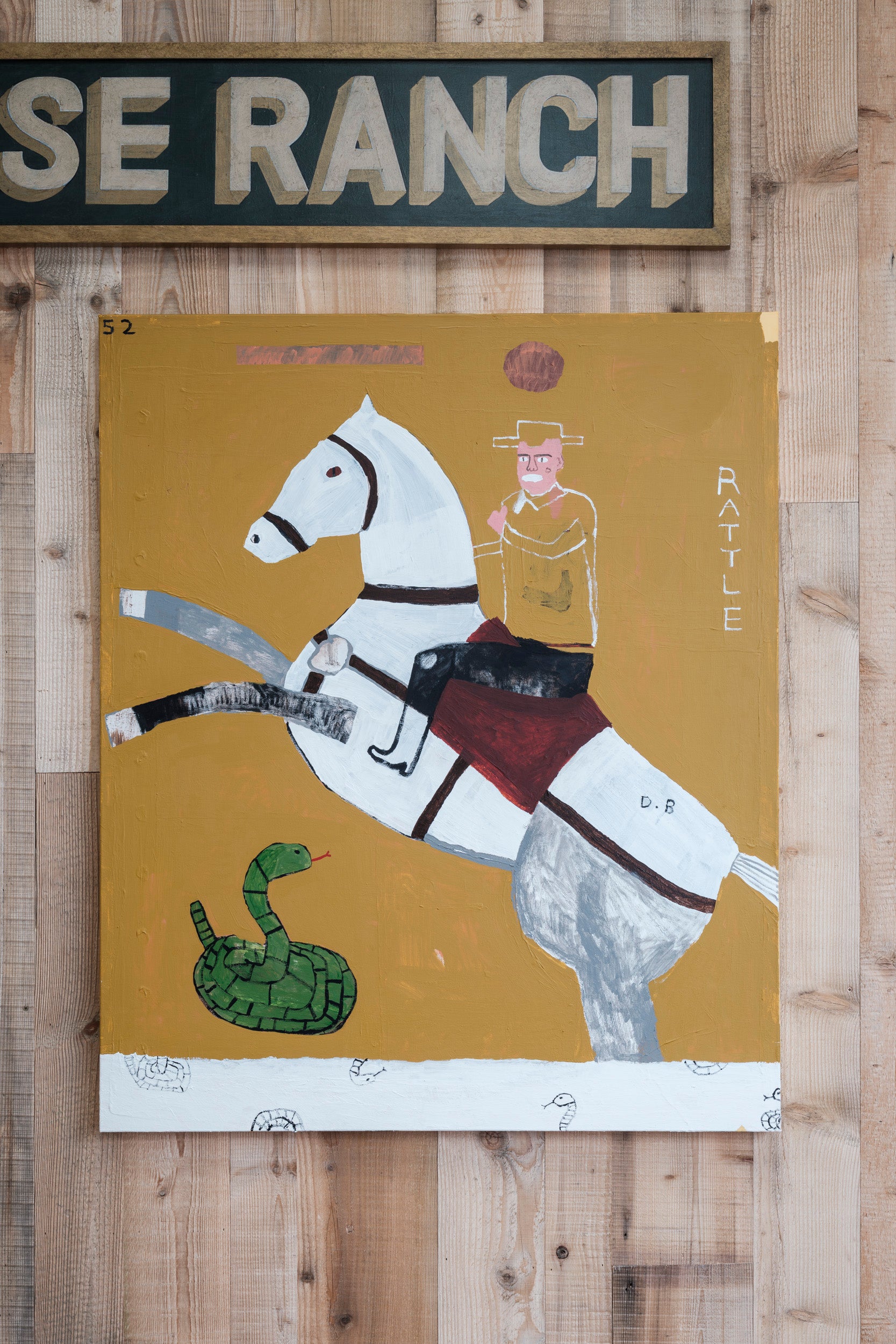Dan Bloodworth is a self-taught artist, born in Norfolk and now based in London. His paintings draw on everyday life, British folklore and old Westerns, shaped by a naïve, instinctive style that captures the world as he sees it.