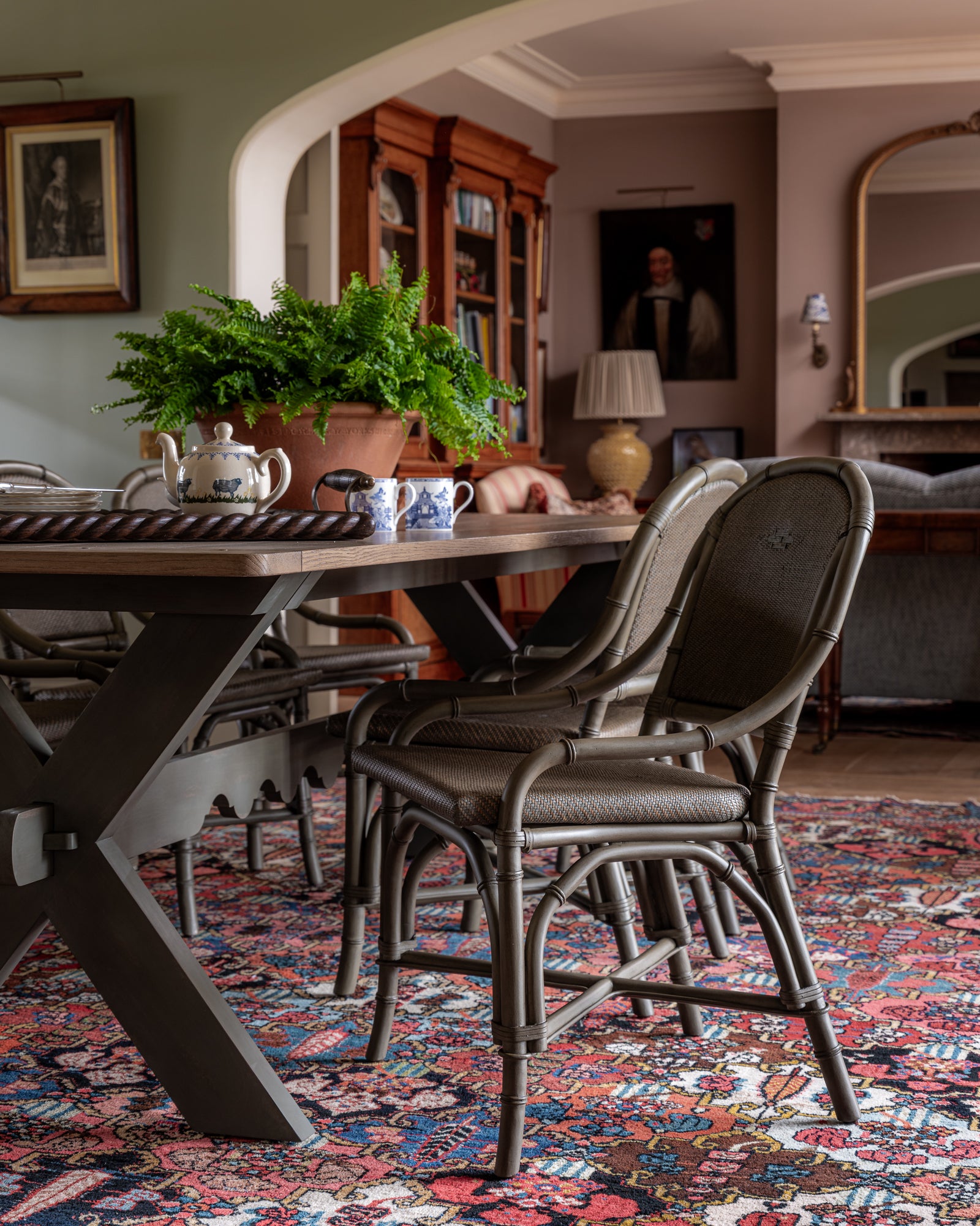 Inspired by traditional bistro chairs, our version is more substantial in shape, softly raked, and exceptionally comfortable to sit in. Crafted with a woven rattan seat and backrest featuring a subtle decorative motif, the chair includes curved bamboo detailing throughout the frame.