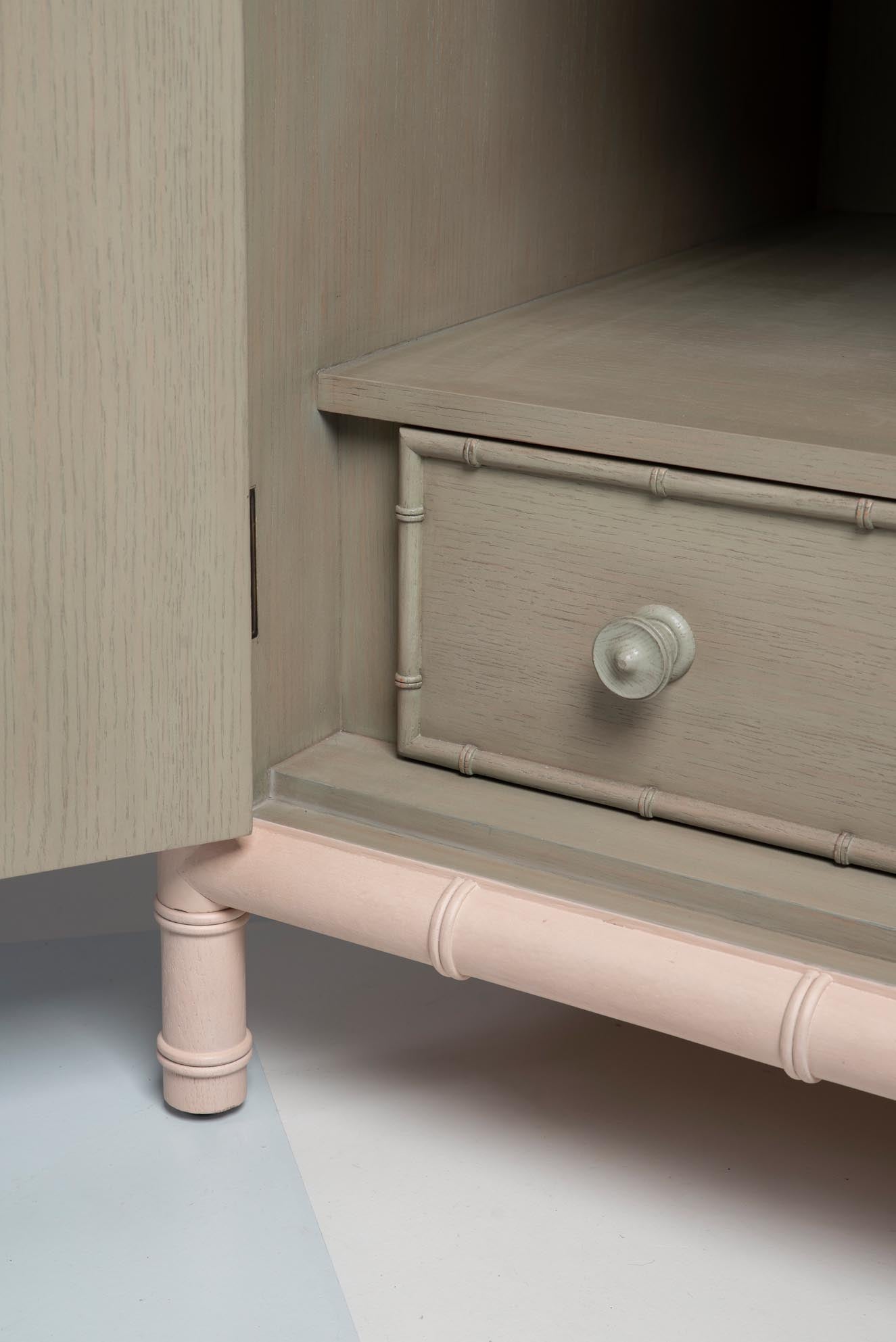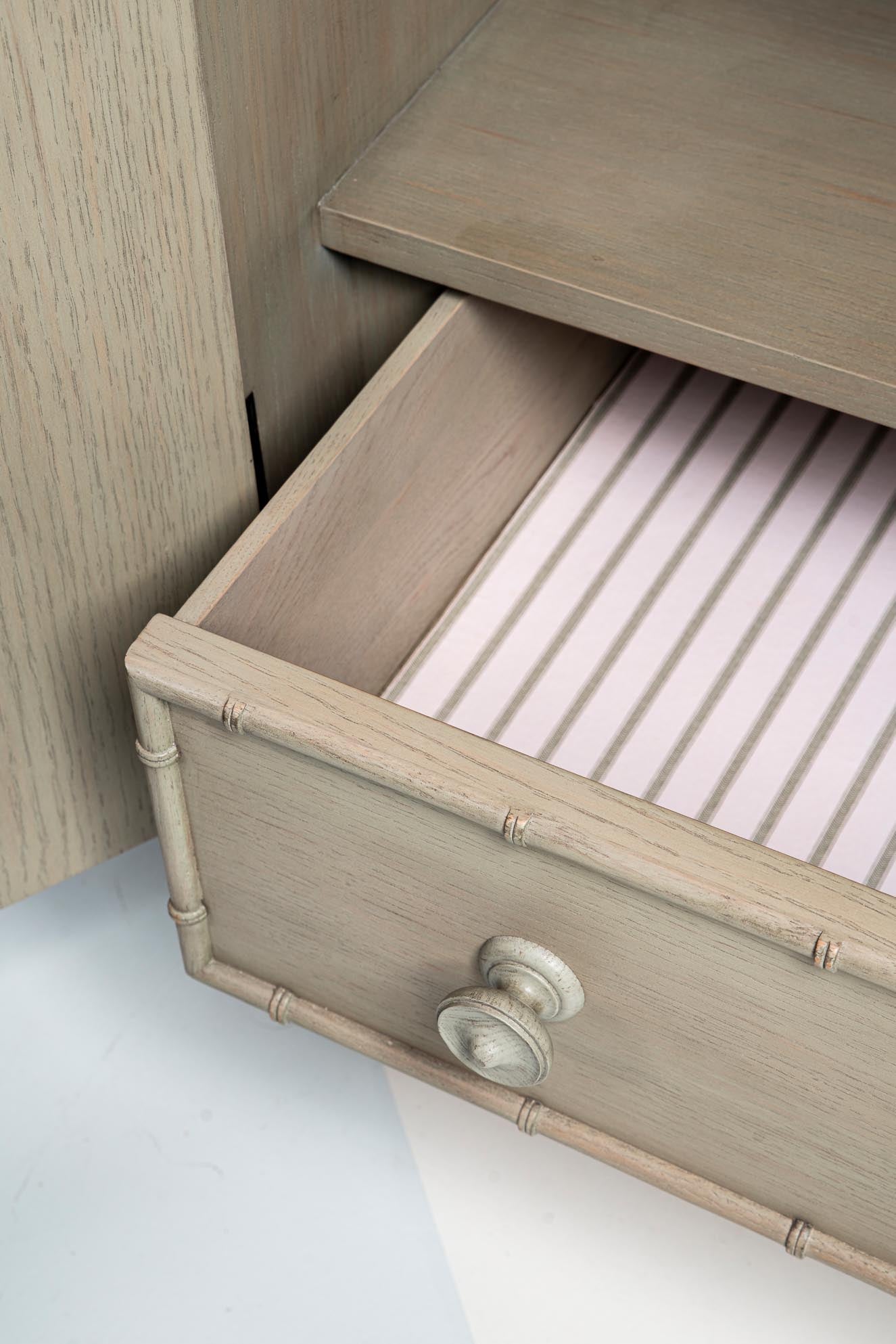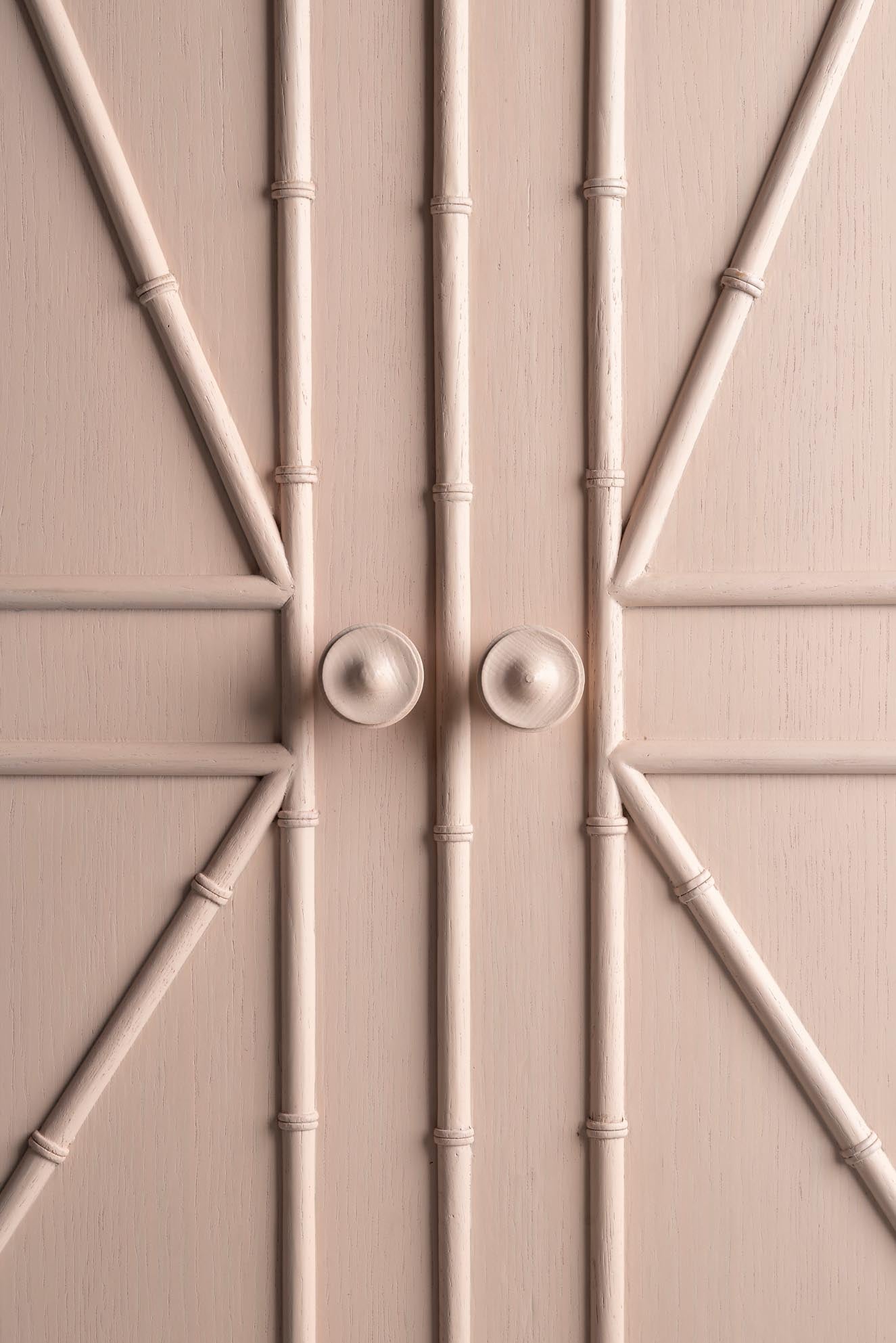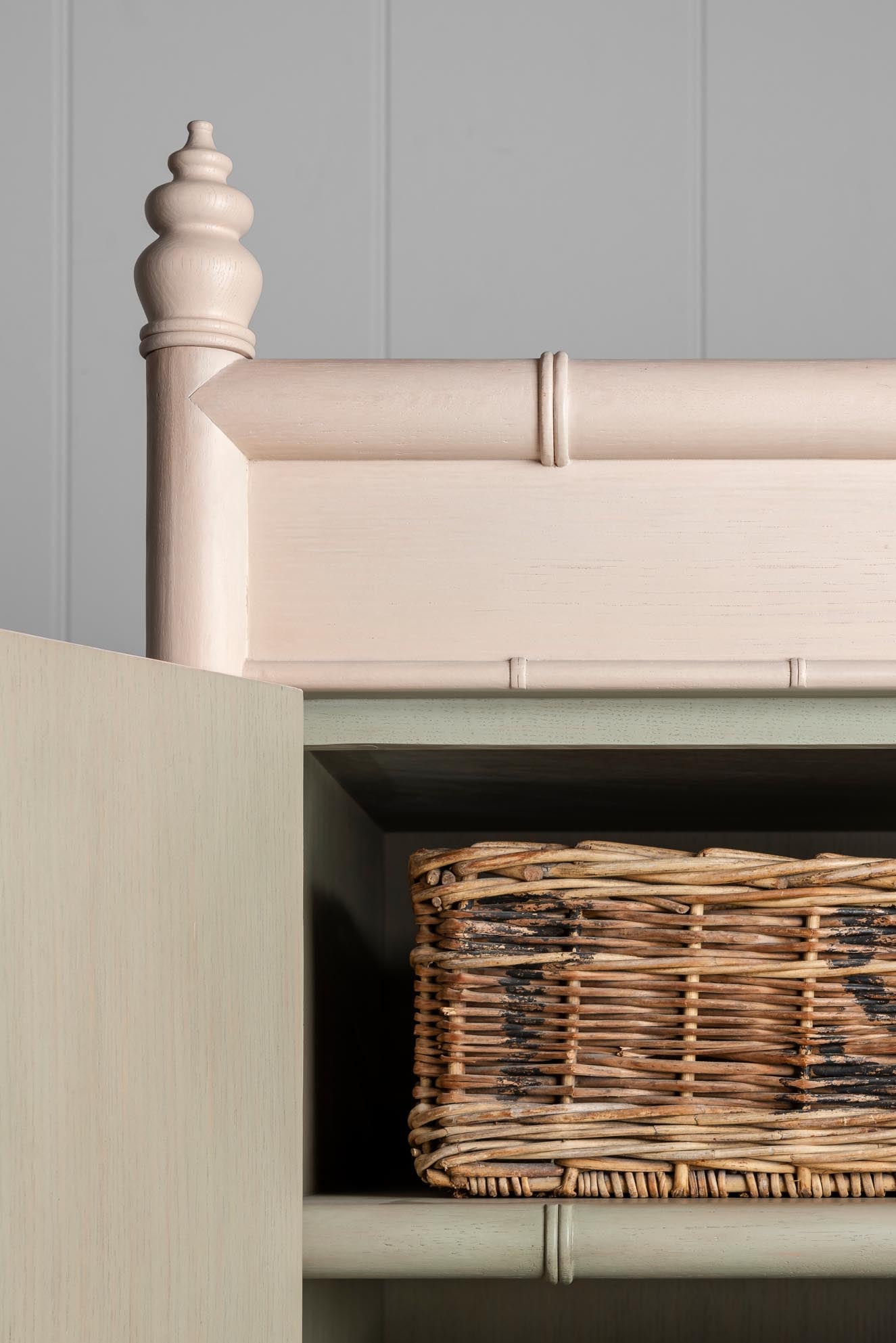 Wardrobes are hard to come by, and combined with our love of bamboo, we had to create one for our collection. One of Kate's favourite pieces, this fun furniture is ideal for guest bedrooms, children's bedrooms, or even entrance halls for hanging coats. Crafted from oak with hand-carved bamboo detailing, it's available in plaster pink, forest, stone, or primed to make your mark. Inside, it features contrast paint, a rail for hanging, and a drawer lined with charming ticking wallpaper.