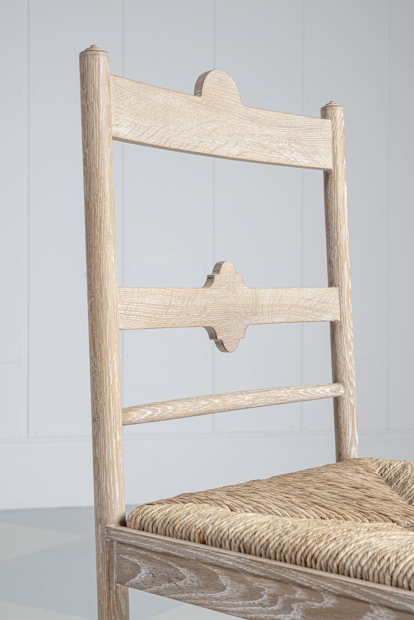 Taking cues from English primitive antiques, our versatile Bill's chair blends elegance with a touch of folk tradition. Its design makes it a perfect fit for country and townhouse settings as part of a dining series or an occasional bedroom chair. It's offered in two finishes - Mist, a pale limed oak, and Smokey, a sophisticated, deeper shade. Each chair is finished with a simple woven seagrass seat.