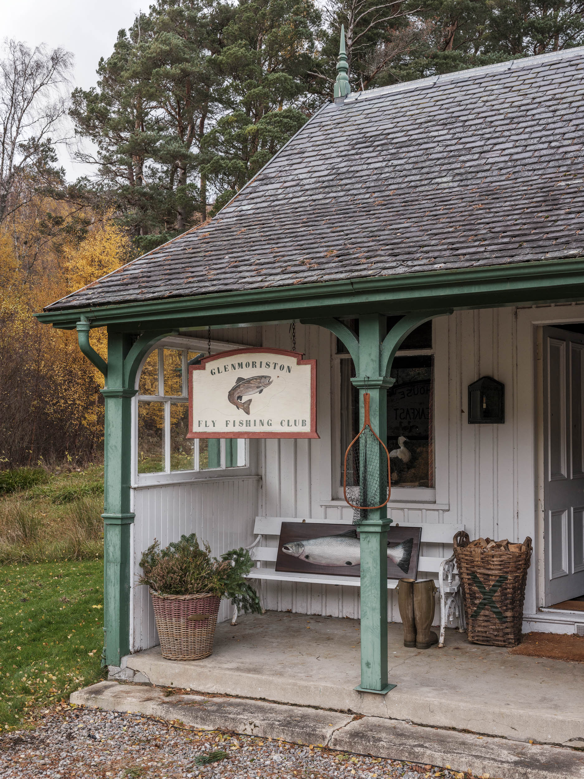 "Glenmoriston Fly Fishing Club" an antique reclaimed wooden sign, hand painted by us with added detail. On the reverse is a sign for a bed & breakfast.