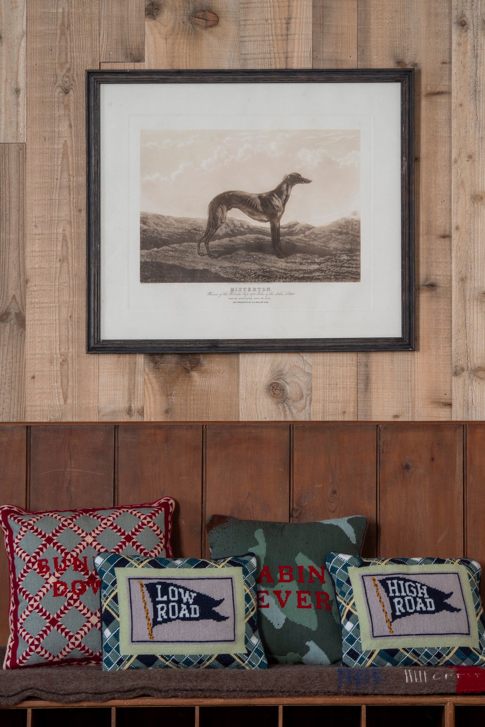 "Misterton" is a print of a greyhound who was the winner of the Waterloo Cup 1879. A charming piece, placed in an antique frame.
