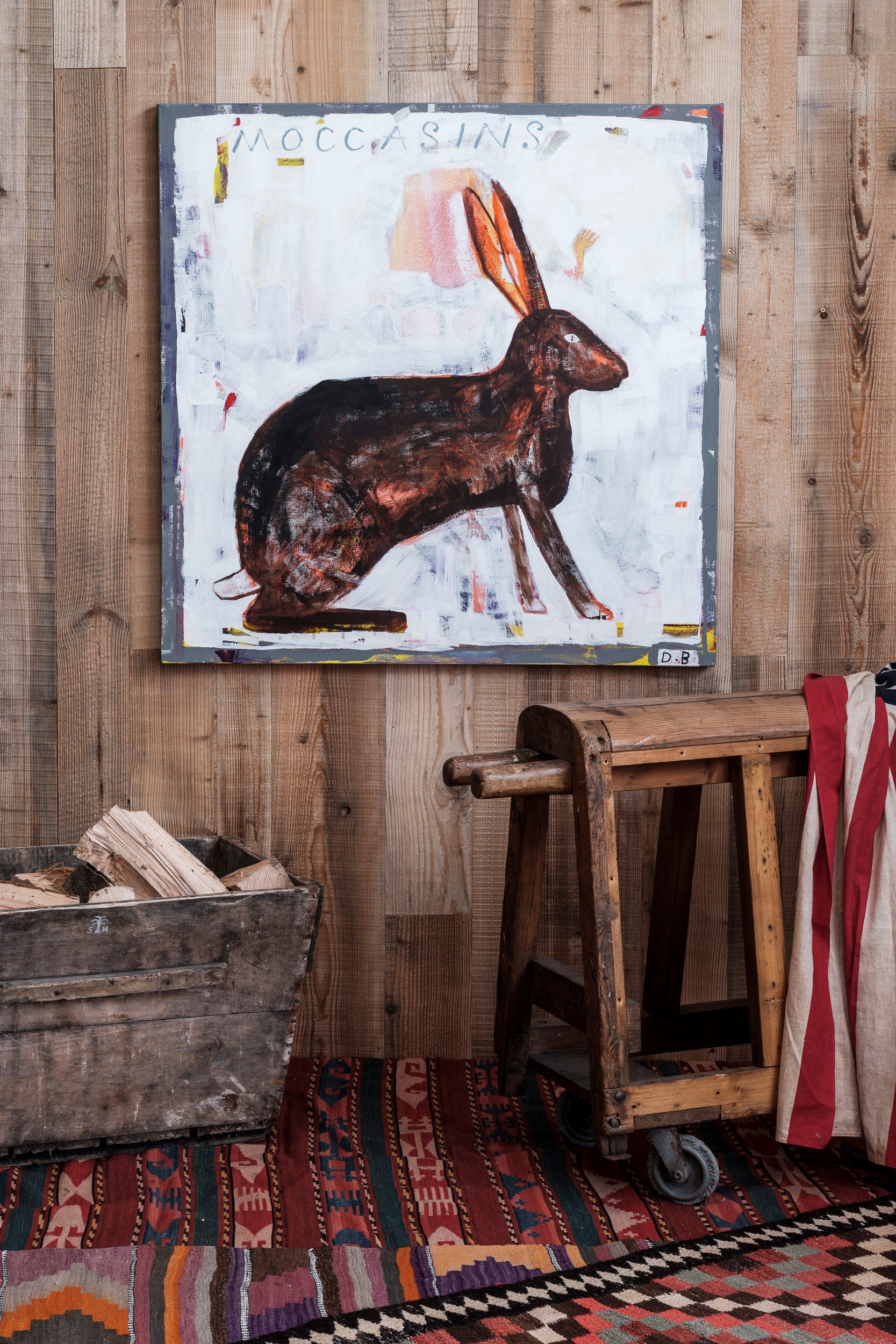 "Moccasins" is part of our new collection by Dan Bloodworth. Dan is a self-taught artist born in Norfolk who lives and works in London. He draws inspiration from everyday life, British folklore, and old Westerns, painting life as he sees it.