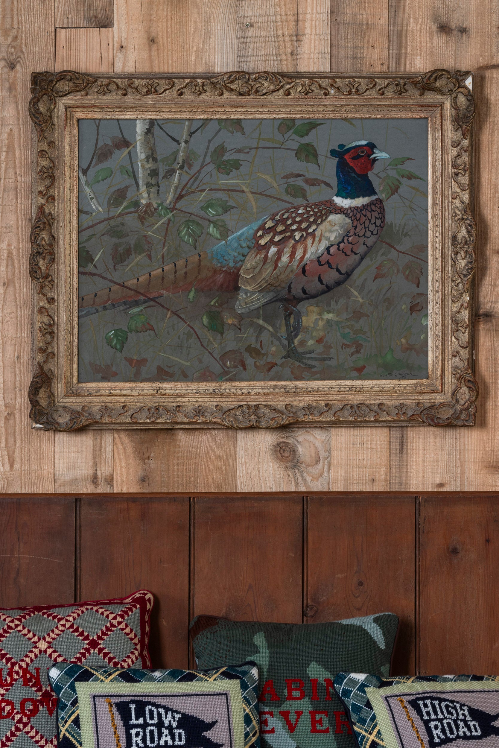 A painting of a pheasant in landscape, placed in a highly decorative, antique frame. Painted by RALSTON GUDGEON (1910-1984), signed lower right.