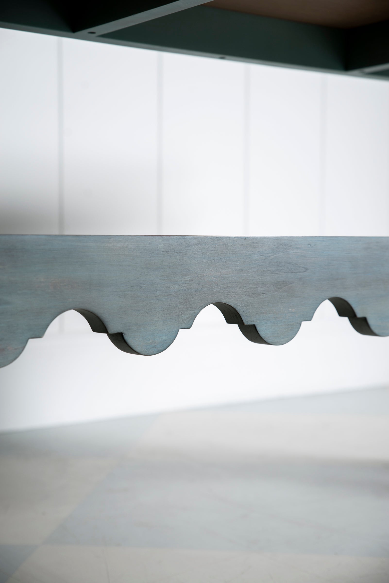 The aptly named Family Table, designed by siblings Tom and Kate Cox, showcases folky craftsmanship and thoughtful detailing. The rustic wooden top includes cleated breadboard ends, while the sturdy base with pegged tenons celebrates traditional woodworking techniques.