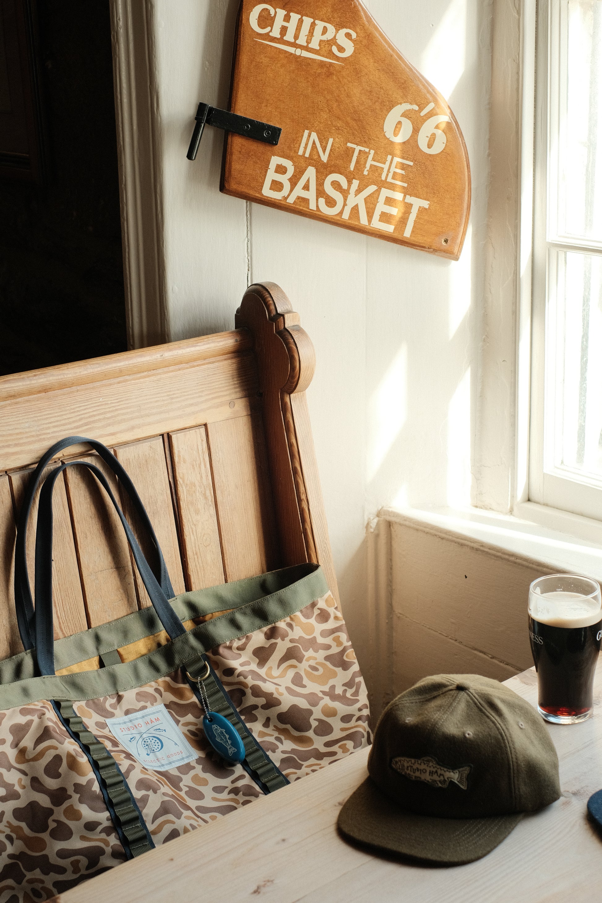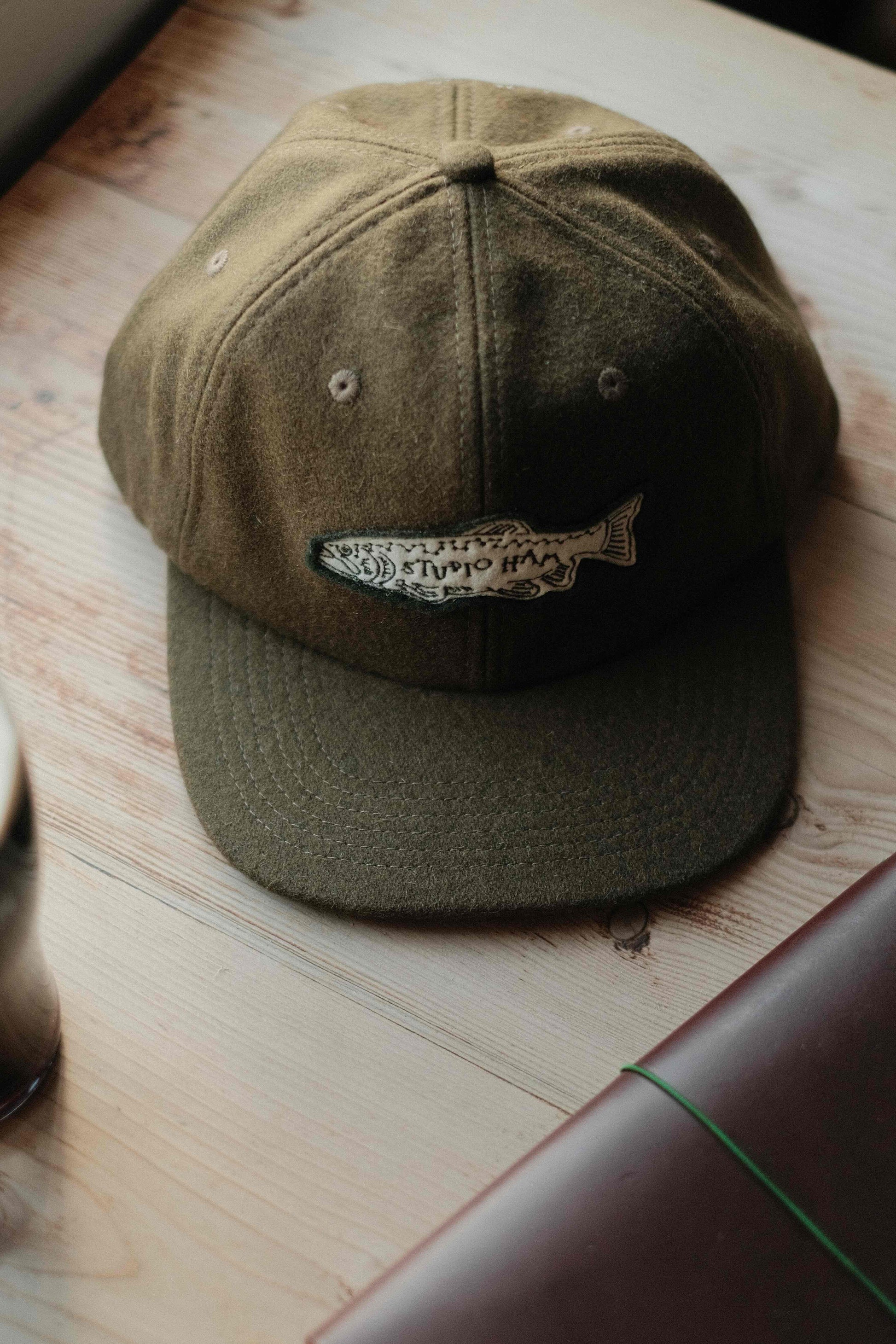 - The Fly Guy Cap - A dark Khaki, featuring a felt salmon and embroidered text on the back "Willy We've Got a Live One"