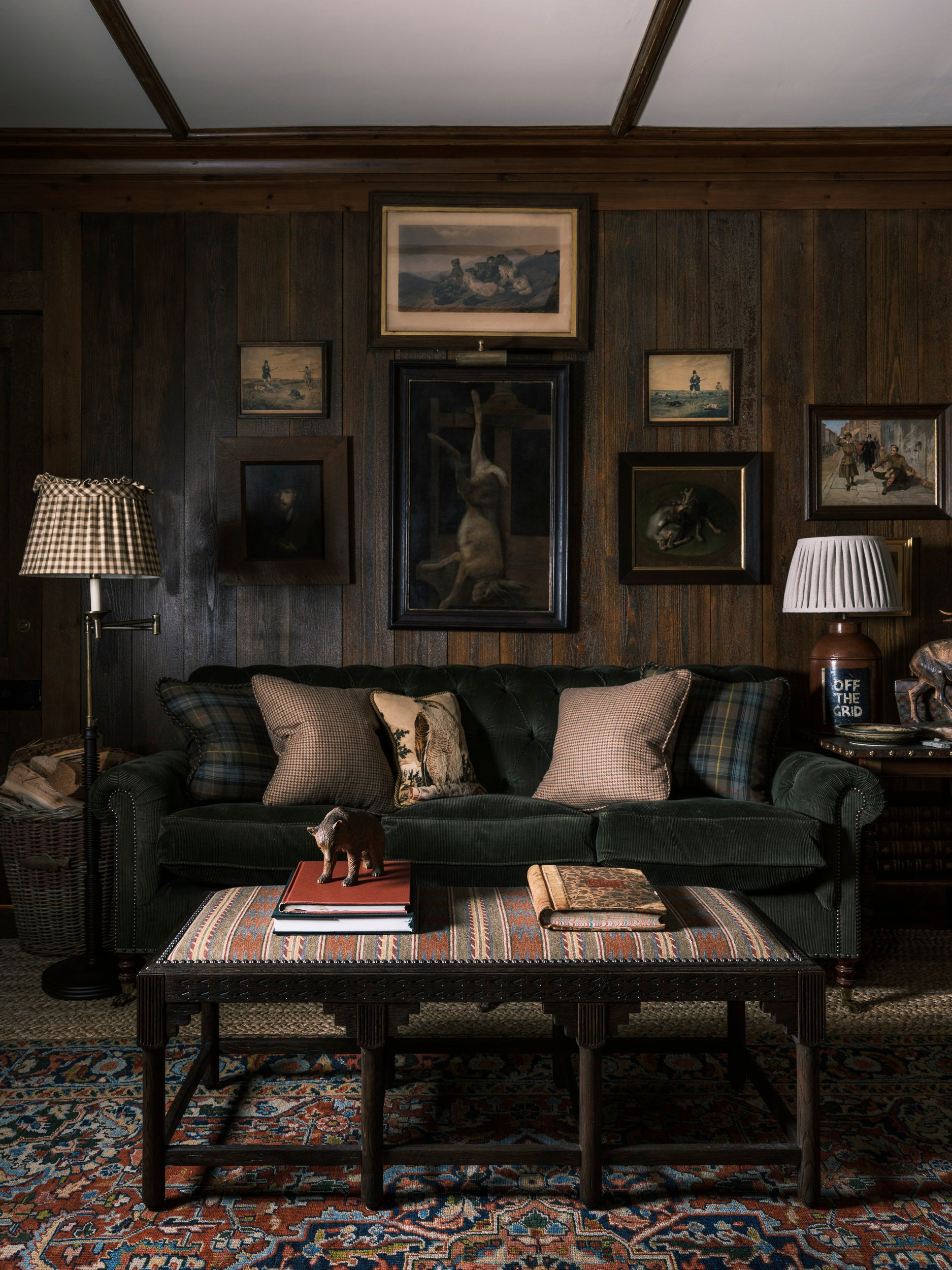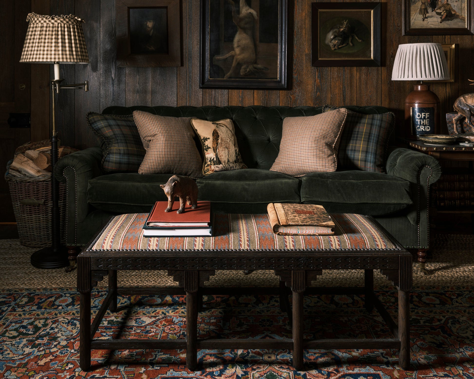 Our 'West' Stool upholstered in a great, highlands inspired fabric. The stool is a blend of tradition and whimsy, drawing inspiration from mountain landscapes. It's hand-crafted from solid oak with intricate chevron carvings and a unique step design. Ideal for bed ends, entrance halls, or as a cosy spot in a snug to rest your feet upon.